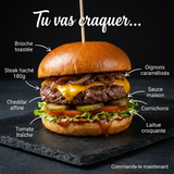 Un burger généreux avec steak haché frais, fromage fondant, salade croquante et sauce maison. Accompagné de frites croustillantes et d’une boisson au choix. Le repas rapide qui fait toujours plaisir !